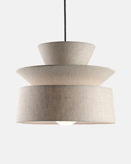 The Lag Lamp is a simple pendant lamp comprised of three transluscent layers. Each layer is made of unbleached, organic cotton to give warmth the otherwise modern aesthetic.